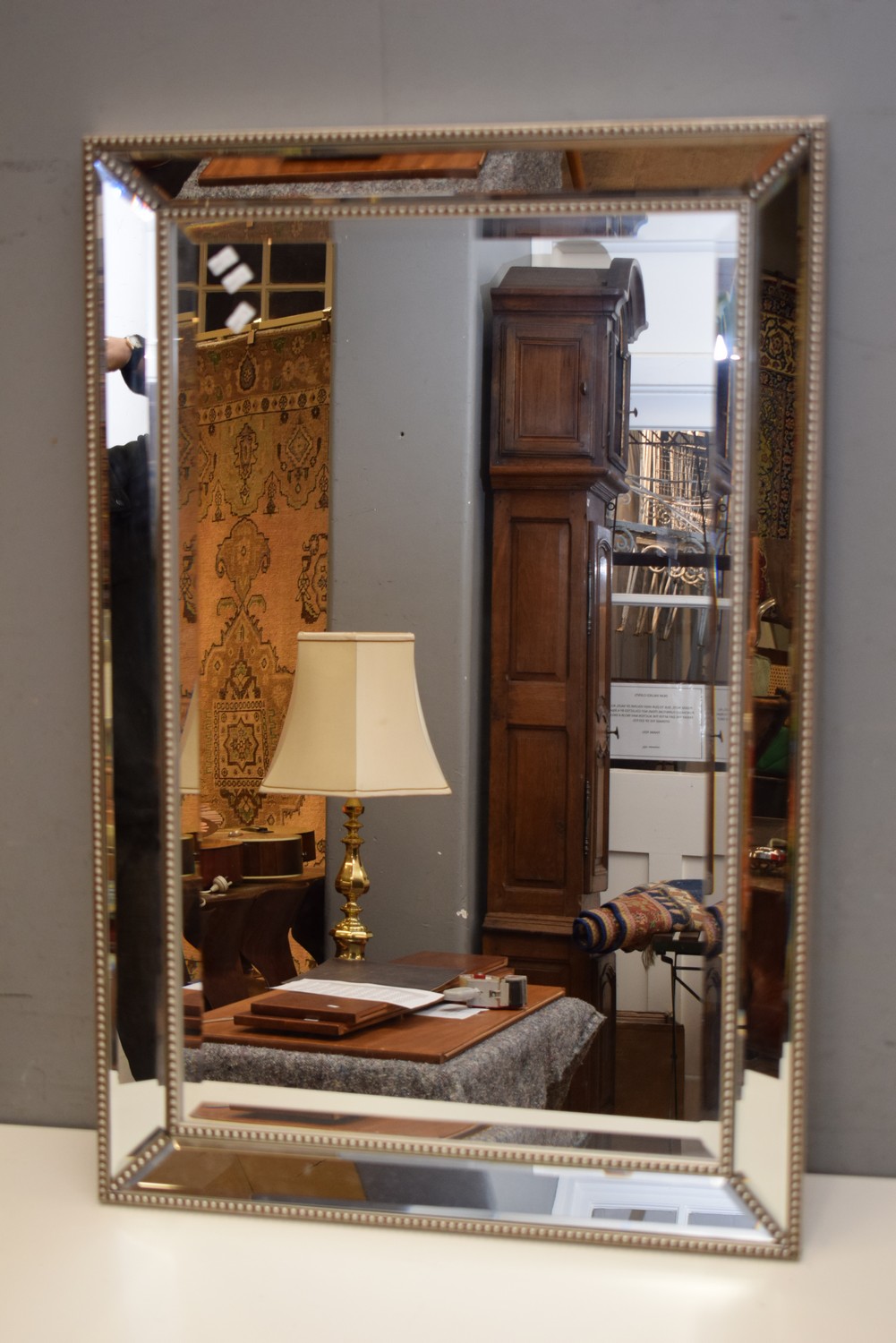 A SILVER BEADED WALL MIRROR WITH BEVELLED EDGE (92H x 61W CM) (LEONARD JOEL DELIVERY SIZE: LARGE)