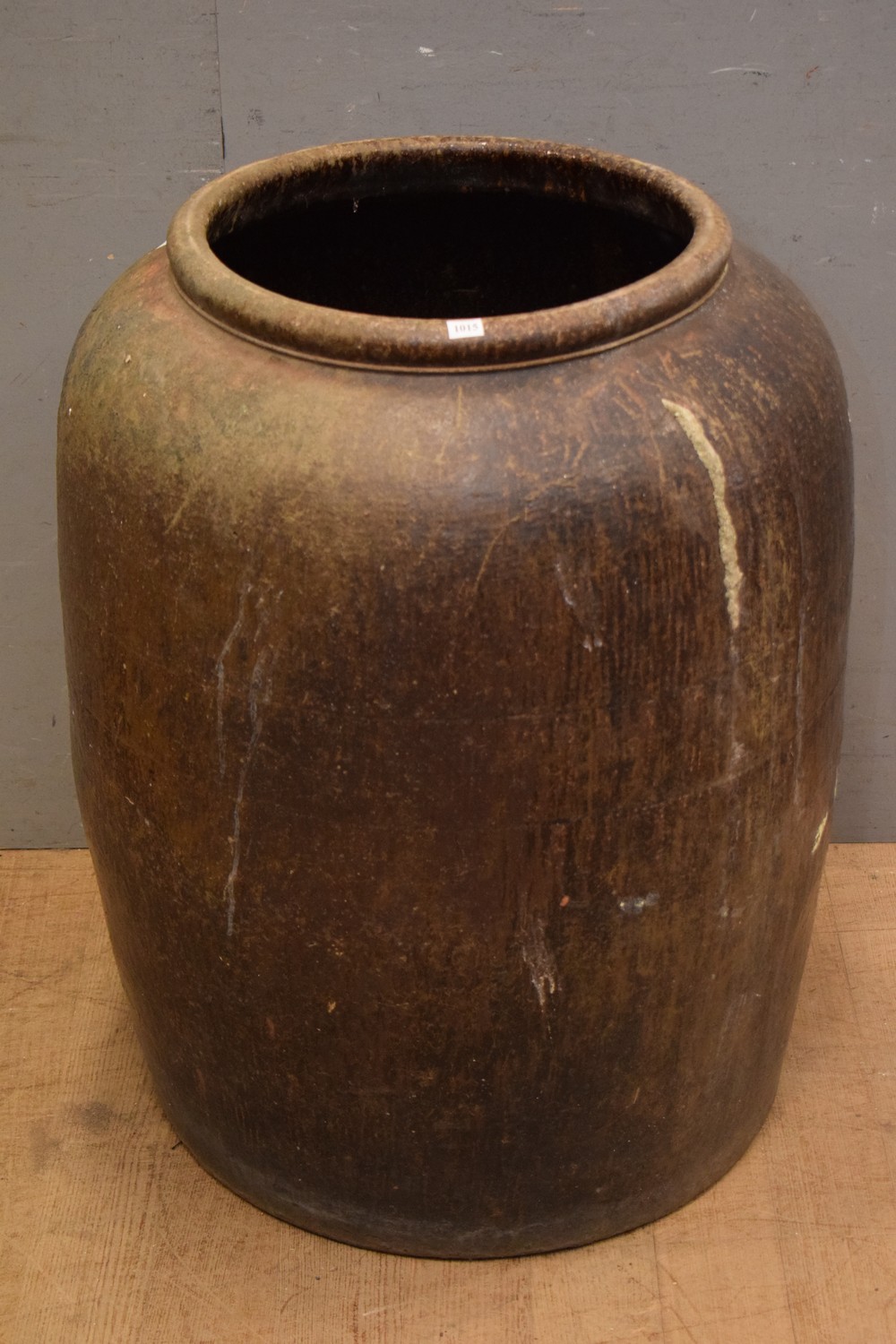 A THAI CAMBODIAN LARGE GLAZED CERAMIC JAR FOR FERMENTING FISH, EARLY TWENTIETH CENTURY (AF) (83H x 65D CM) (PLEASE NOTE THIS HEAVY ITEM MUST BE REMOVED BY CARRIERS AT THE CUSTOMER'S EXPENSE. LEONARD JOEL STAFF CANNOT ASSIST CARRYING THIS ITEM) (X-LARGE ITEM)