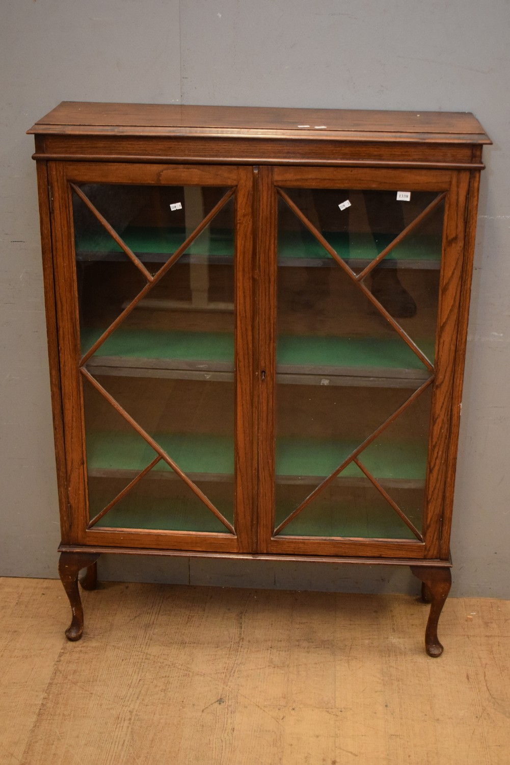 AN OAK GLASS FRONTED CABINET (AF) (122H x 92W x 27D CM) (LEONARD JOEL DELIVERY SIZE: LARGE)