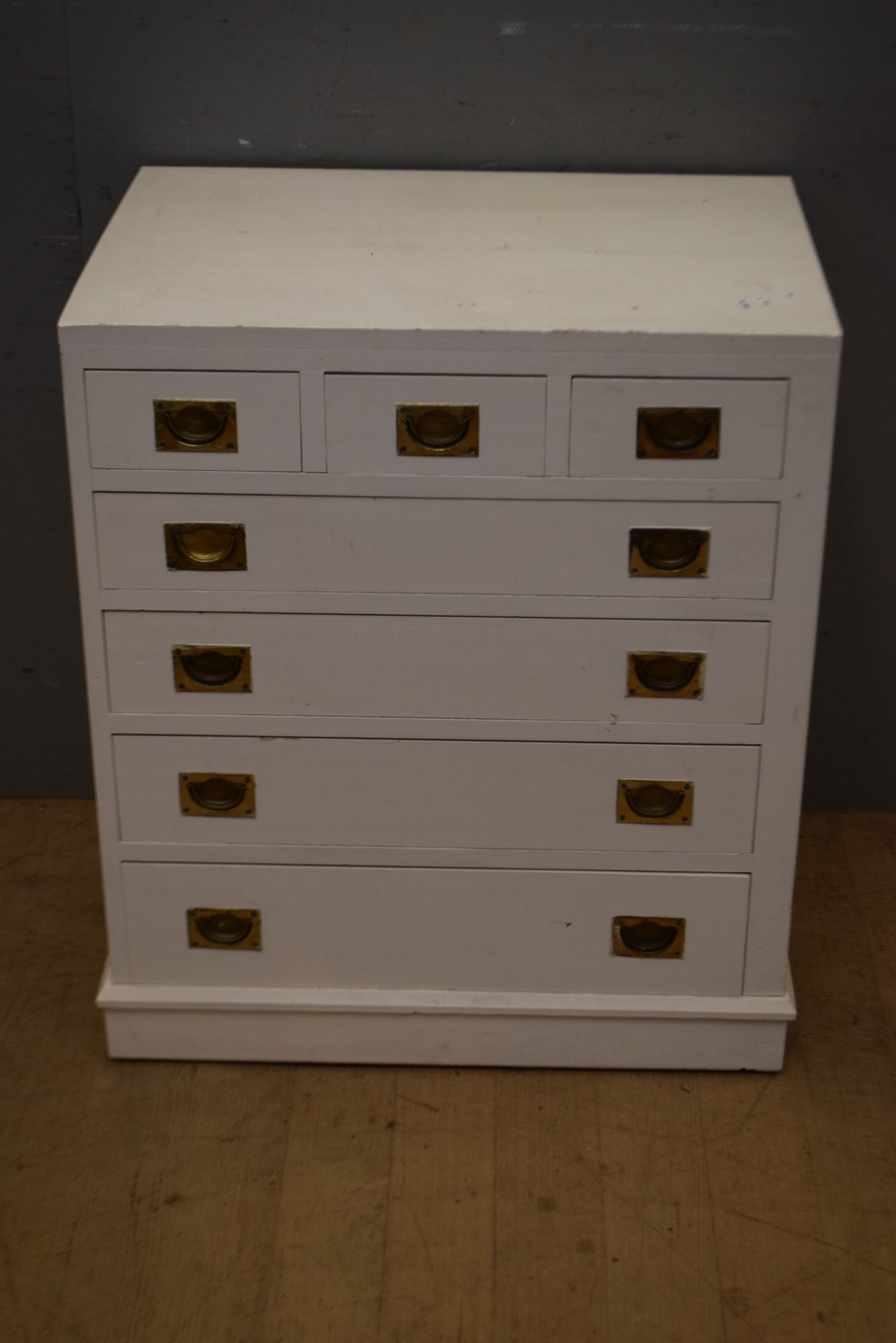 A WHITE PAINTED CHEST WITH BRASS HANDLES (AF) ( 83H X 71W X 50D CM)  (LEONARD JOEL DELIVERY SIZE: LARGE)