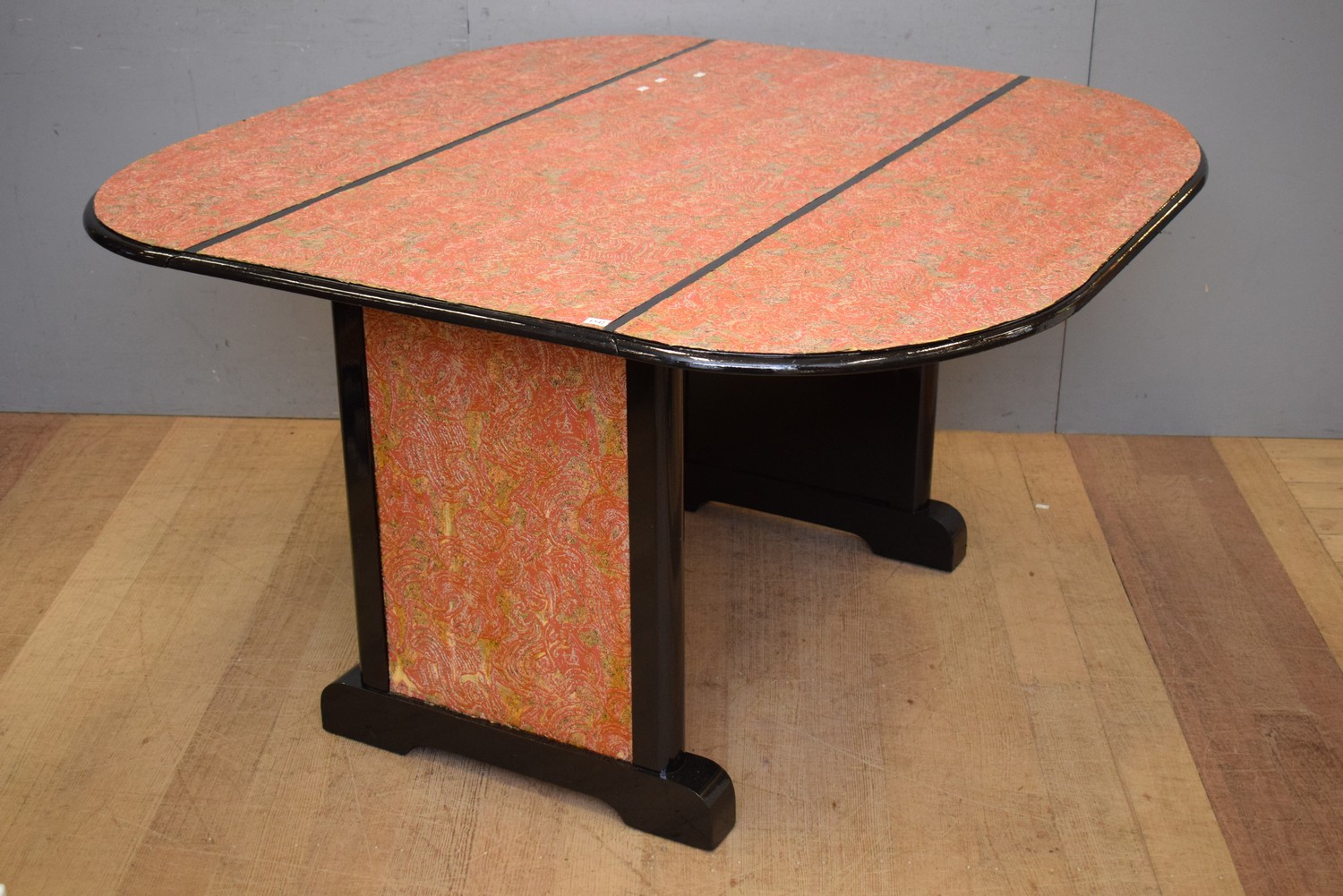 A FRENCH DECORATIVE BLACK DROPSIDE TABLE WITH TEXURED TOP (76H x 135W x 132D CM) (PLEASE NOTE THIS HEAVY ITEM MUST BE REMOVED BY CARRIERS AT THE CUSTOMER'S EXPENSE. LEONARD JOEL STAFF CANNOT ASSIST CARRYING THIS ITEM) (X-LARGE ITEM)