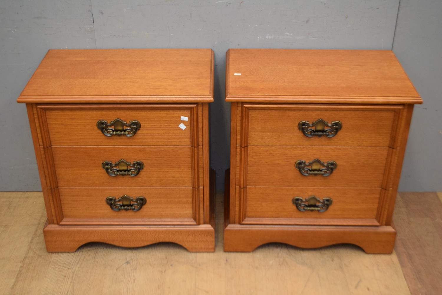 A PAIR OF THREE DRAWER BEDSIDES ( 66H X 63W X 40D CM) (LEONARD JOEL DELIVERY SIZE: LARGE)