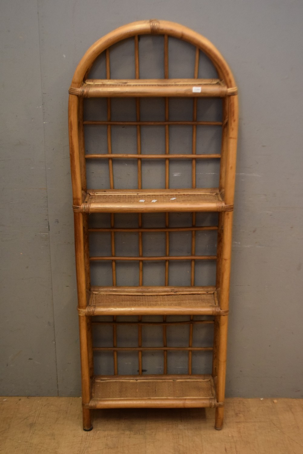 A FOUR TIER CANE SHELF UNIT (152H x 56W x 23D CM) (LEONARD JOEL DELIVERY SIZE: LARGE)