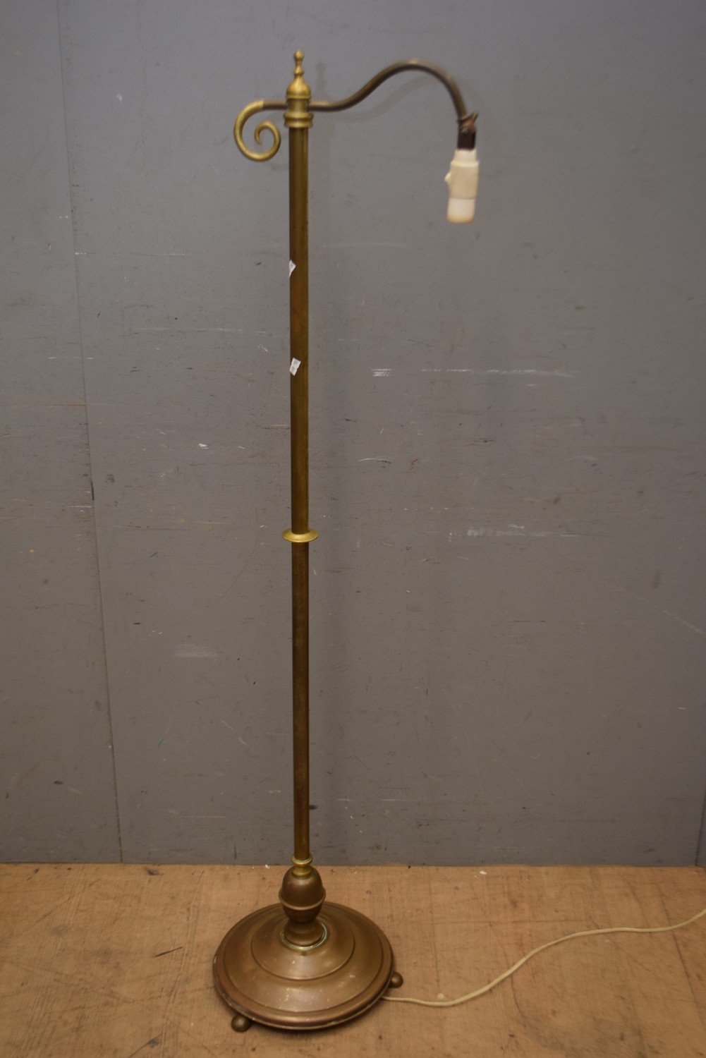 AN EARLY 20TH CENTURY SOLID BRASS STANDARD LAMP WITH WEIGHTED CAST IRON BASE PLATE ( 149H CM) (LEONARD JOEL DELIVERY SIZE: LARGE)