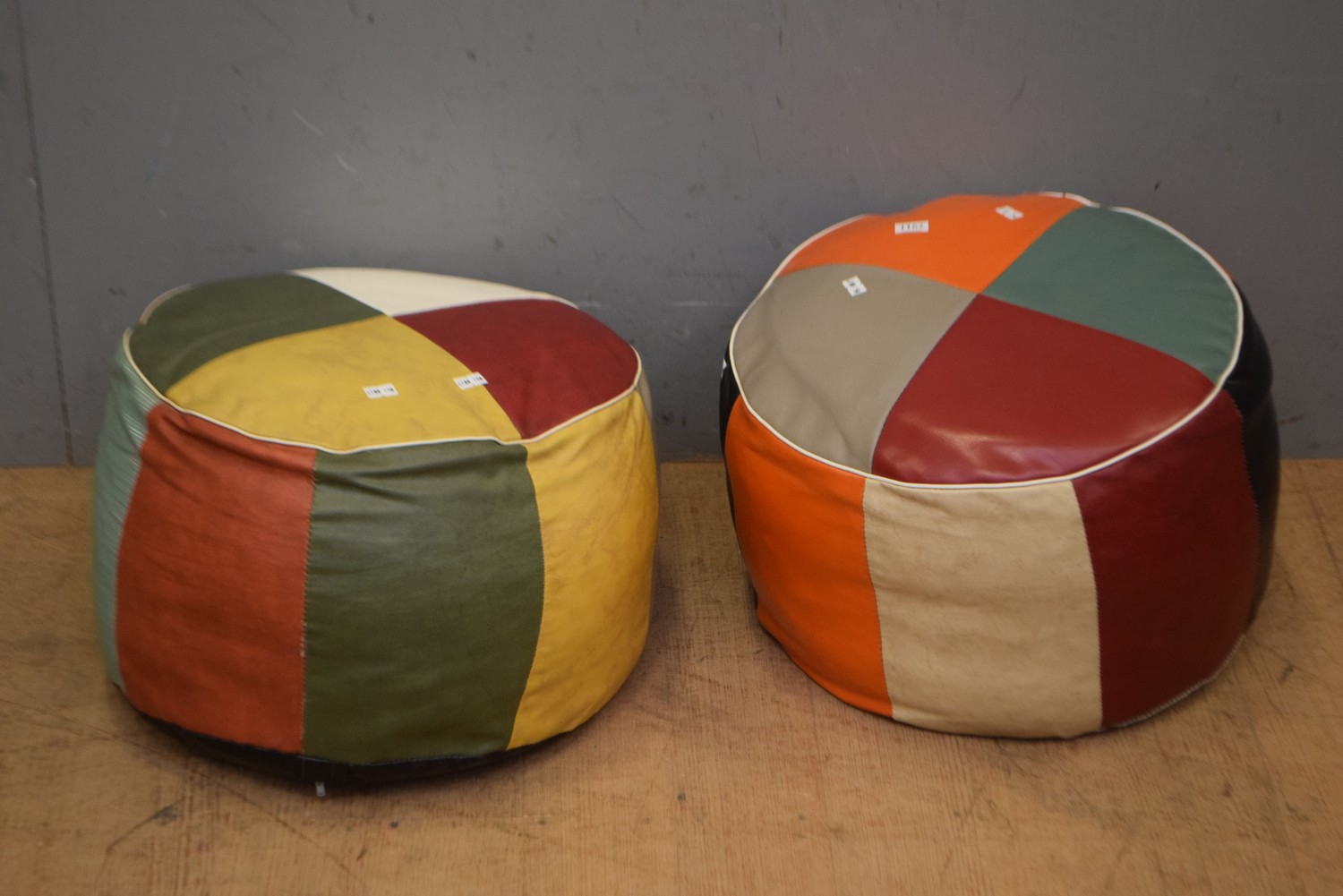 PAIR OF MULTI COLOURED AUSTRALIAN MADE POUFFS (25H x 42D CM) (LEONARD JOEL DELIVERY SIZE: LARGE)