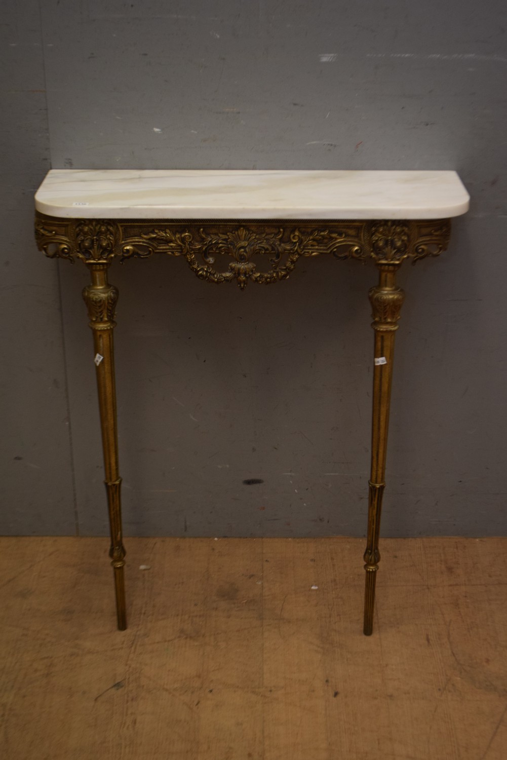 A FRENCH SOLID BRASS AND MARBLE TOPPED CONSOLE TABLE (81H x 71W x 25D CM) (LEONARD JOEL DELIVERY SIZE: LARGE)