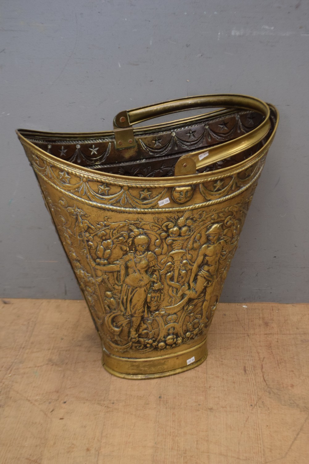 A SOLID BRASS HEAVILY SCENIC EMBOSSED HANDLED UMBRELLA STAND ( 58H X 56W X 35CM) (LEONARD JOEL DELIVERY SIZE: MEDIUM)