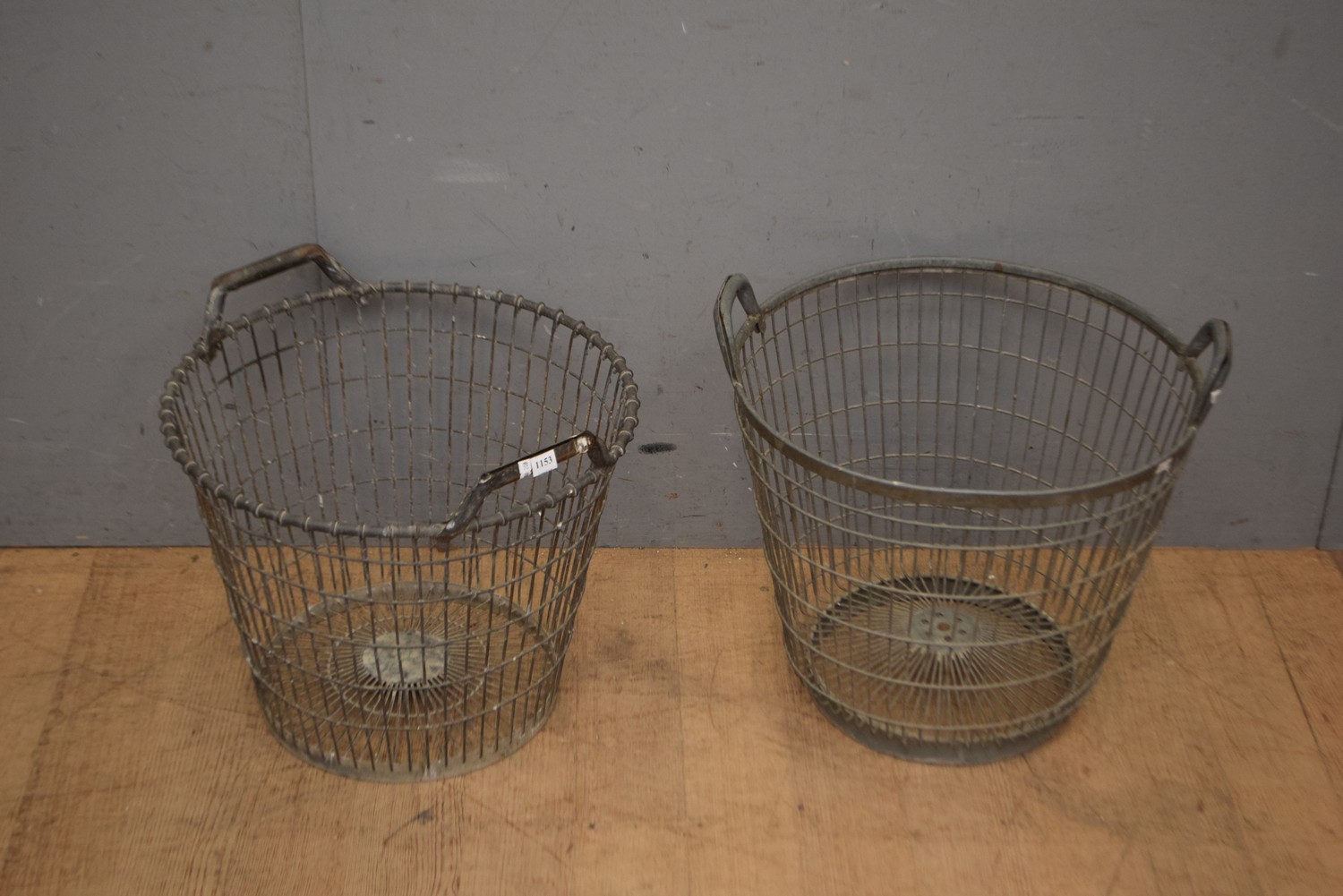PAIR OF GALVANISED IRON FRENCH WIREWORK FRUIT BASKETS (44H x 59D CM) (LEONARD JOEL DELIVERY SIZE: LARGE)