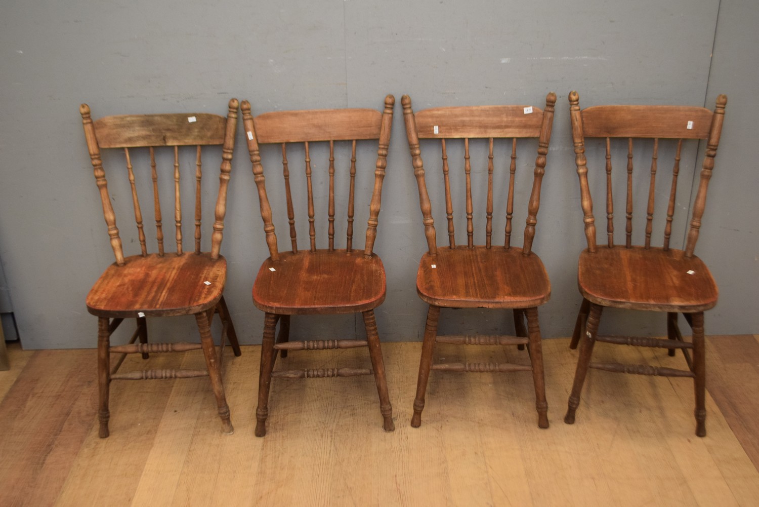 SET OF 4 19TH CENTURY OAK SPINDLE BACK COTTAGE CHAIRS (A/F) (SPLITTING TO BACK) (85H x 45W x 47D CM) (LEONARD JOEL DELIVERY SIZE: LARGE)