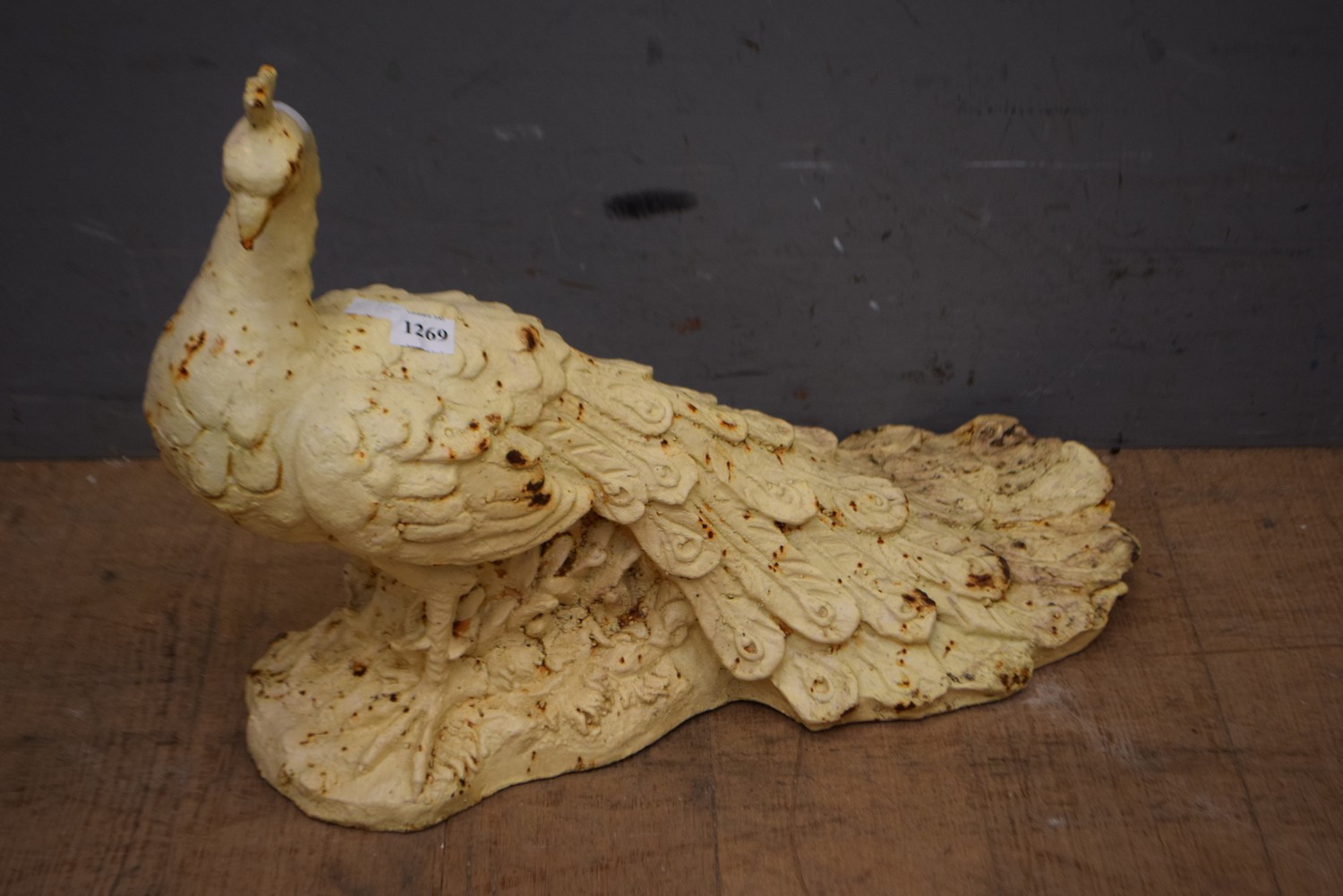 A CAST IRON PEACOCK (32H x 46W CM) (LEONARD JOEL DELIVERY SIZE: LARGE)
