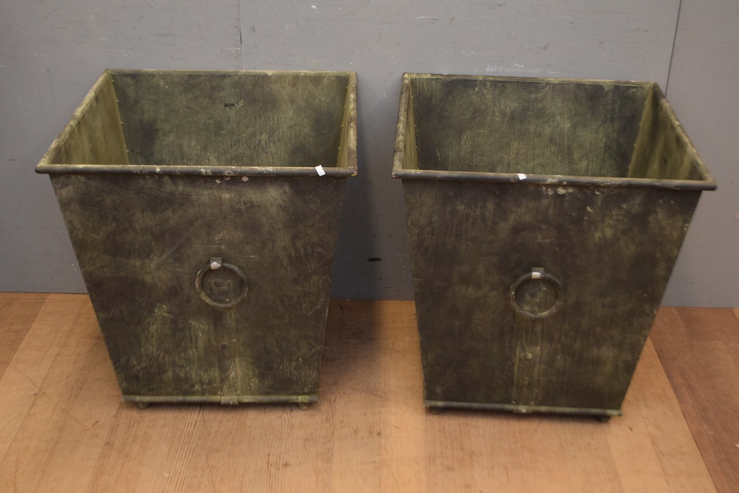 A PAIR OF LARGE TAPERED METAL PLANTERS ( 68H X 65W X 65D CM) (LEONARD JOEL DELIVERY SIZE: LARGE)