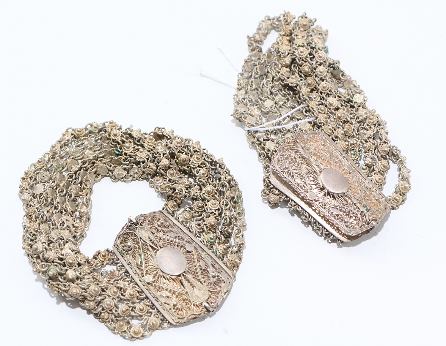 TWO ANTIQUE INDIAN BRACELETS IN SILVER, WITH CLASPS IN STERLING SILVER. LENGTH 190MM