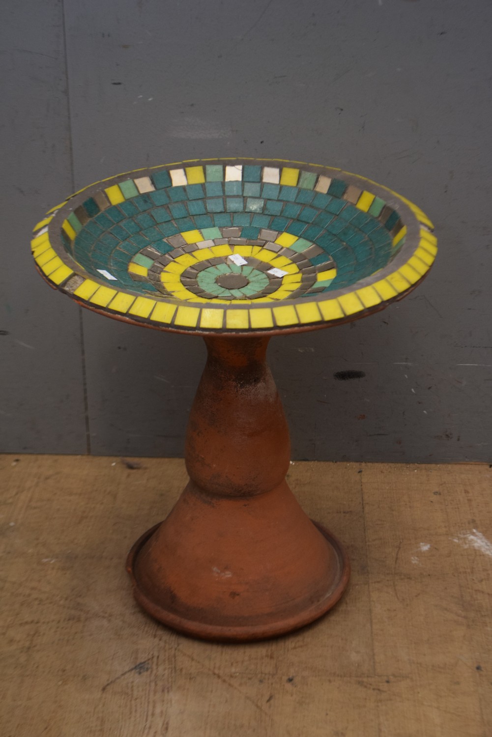 A MOSAIC BIRD BATH (A/F) ( 45H X 43DIAMETER CM) (LEONARD JOEL DELIVERY SIZE: LARGE)