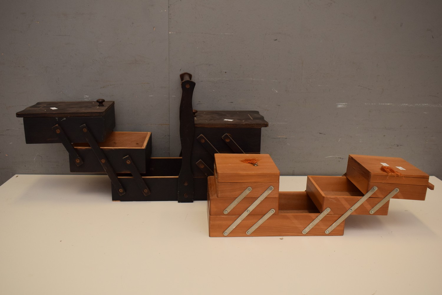 TWO FOLDOUT SEWING BOXES (A/F) (29H x 39W x 30D CM) (LEONARD JOEL DELIVERY SIZE: MEDIUM)