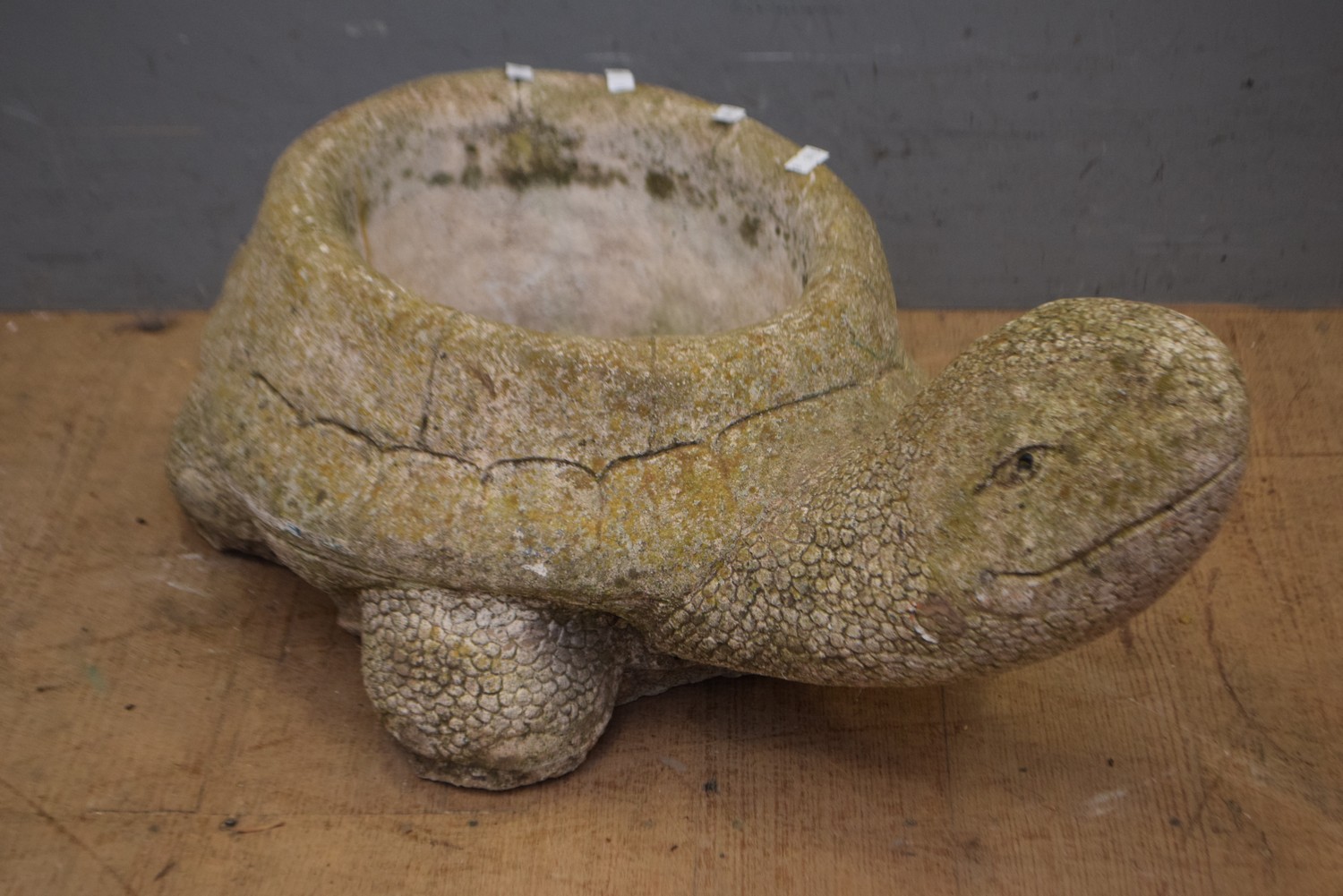A CONCRETE GARDEN TURTLE ( 24H X 54W X 32D CM) (PLEASE NOTE THIS HEAVY ITEM MUST BE REMOVED BY CARRIERS AT THE CUSTOMER'S EXPENSE. LEONARD JOEL STAFF CANNOT ASSIST CARRYING THIS ITEM) (X-LARGE ITEM)