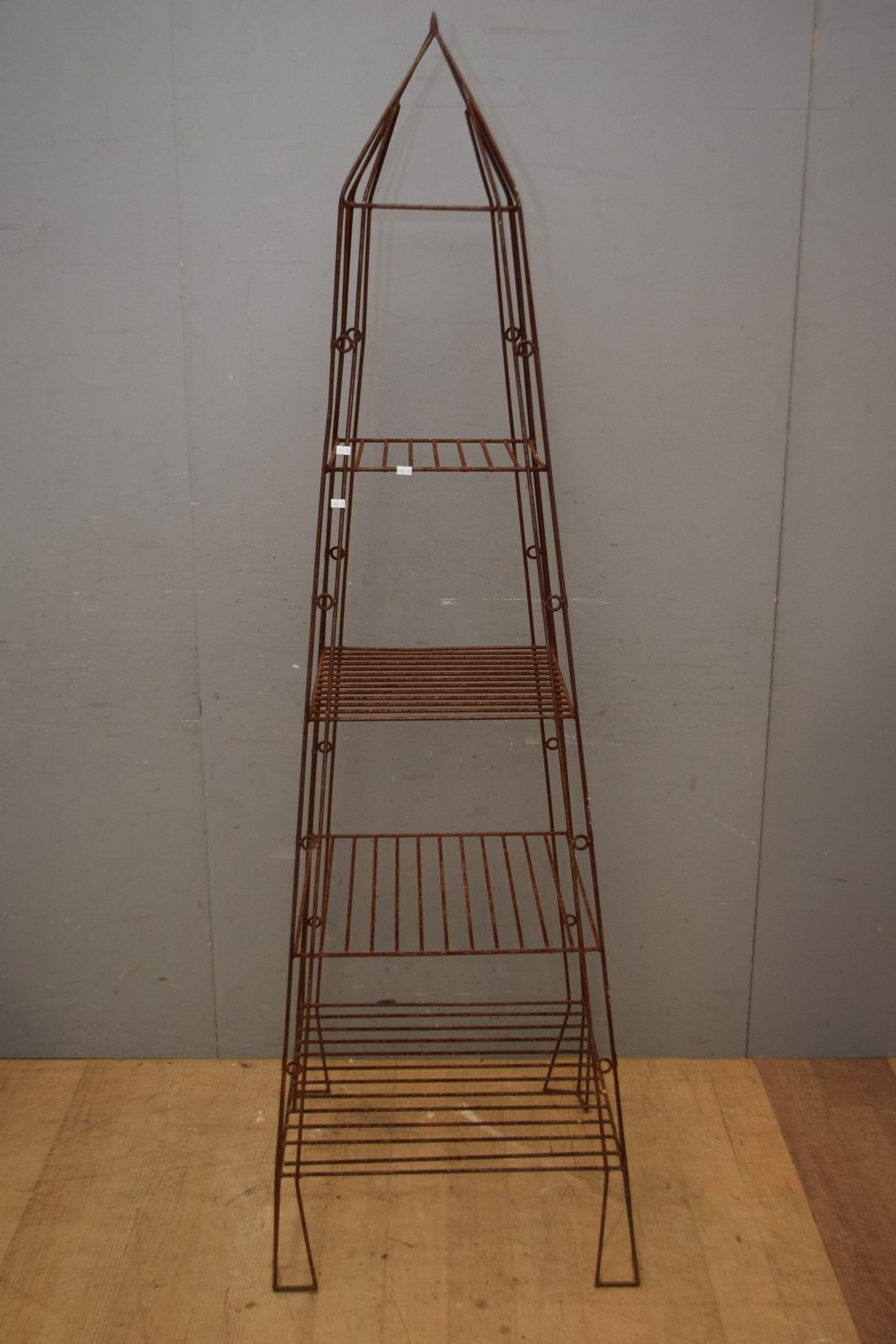 A METAL FIVE TIER PLANT STAND (A/F) ( 195H X 57W X 57D CM) (LEONARD JOEL DELIVERY SIZE: LARGE)