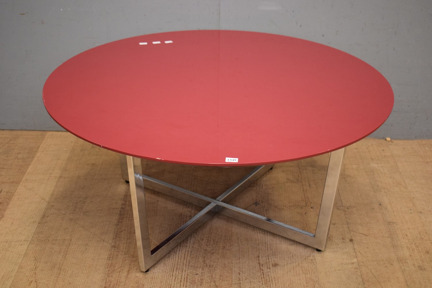 A CONTEMPORARY CIRCULAR COFFEE TABLE WITH CHROME BASS (A/F) (40H x 89D CM) (LEONARD JOEL DELIVERY SIZE: LARGE)