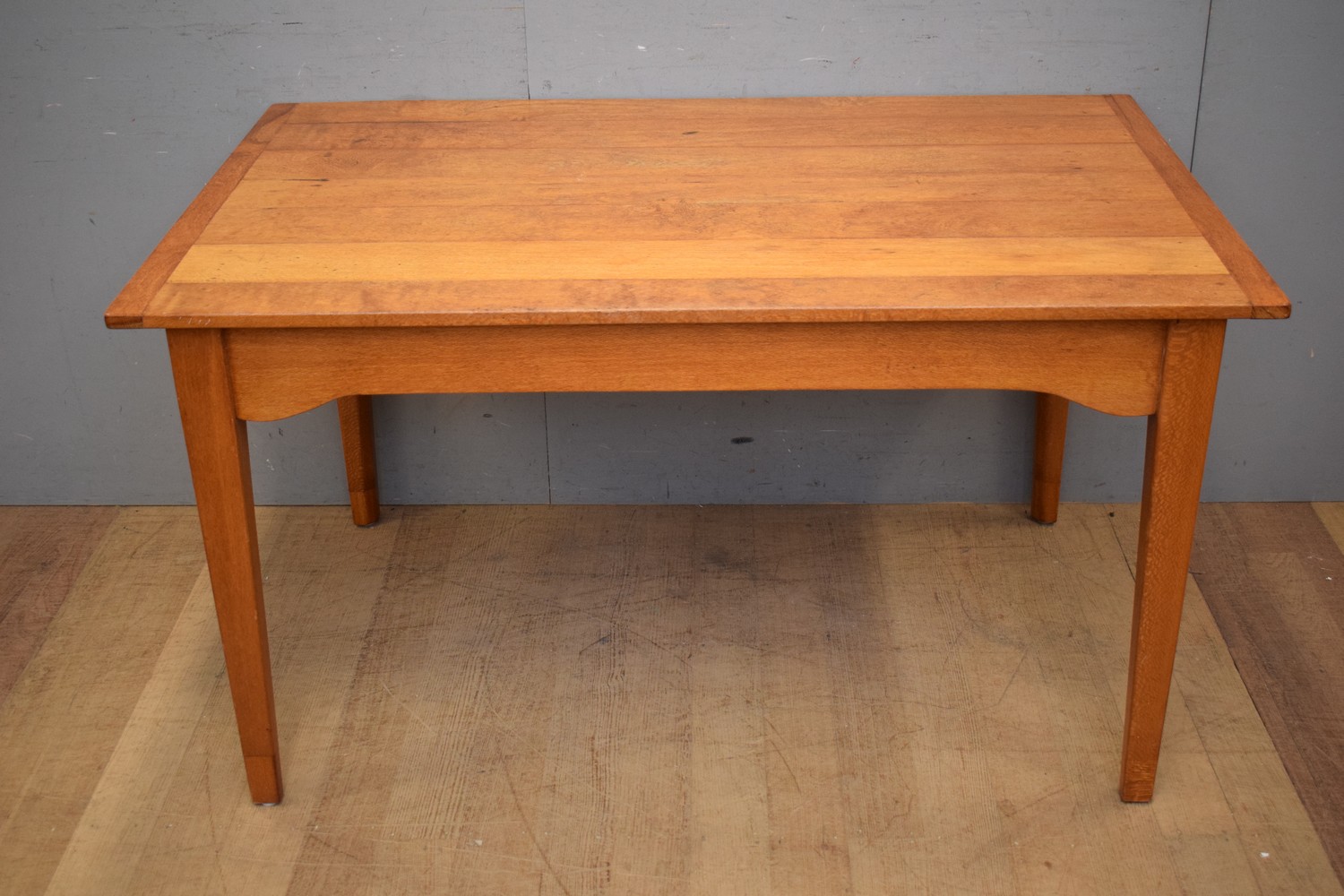A QUEENSLAND SOLID SILKY OAK BREAKFAST TABLE (77H x 142W x 90D CM) (PLEASE NOTE THIS HEAVY ITEM MUST BE REMOVED BY CARRIERS AT THE CUSTOMER'S EXPENSE. LEONARD JOEL STAFF CANNOT ASSIST CARRYING THIS ITEM) (X-LARGE ITEM)