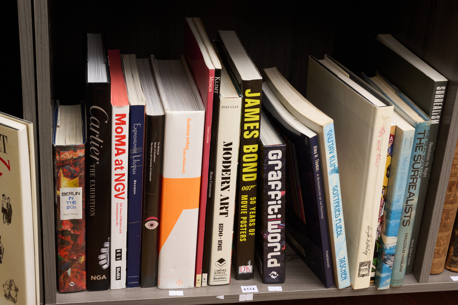 A SHELF OF 20TH CENTURY ART REFERENCE AND DESIGN INCLUDING 'GRAFFITI WORLD', COLIN MCDOWELL 'FASHION TODAY' GOTTFRIED FLIEDL, 'GUSTAV KLIMT', 'CARTIER THE EXHIBITION', LEONARD JOEL LOCAL DELIVERY SIZE: MEDIUM