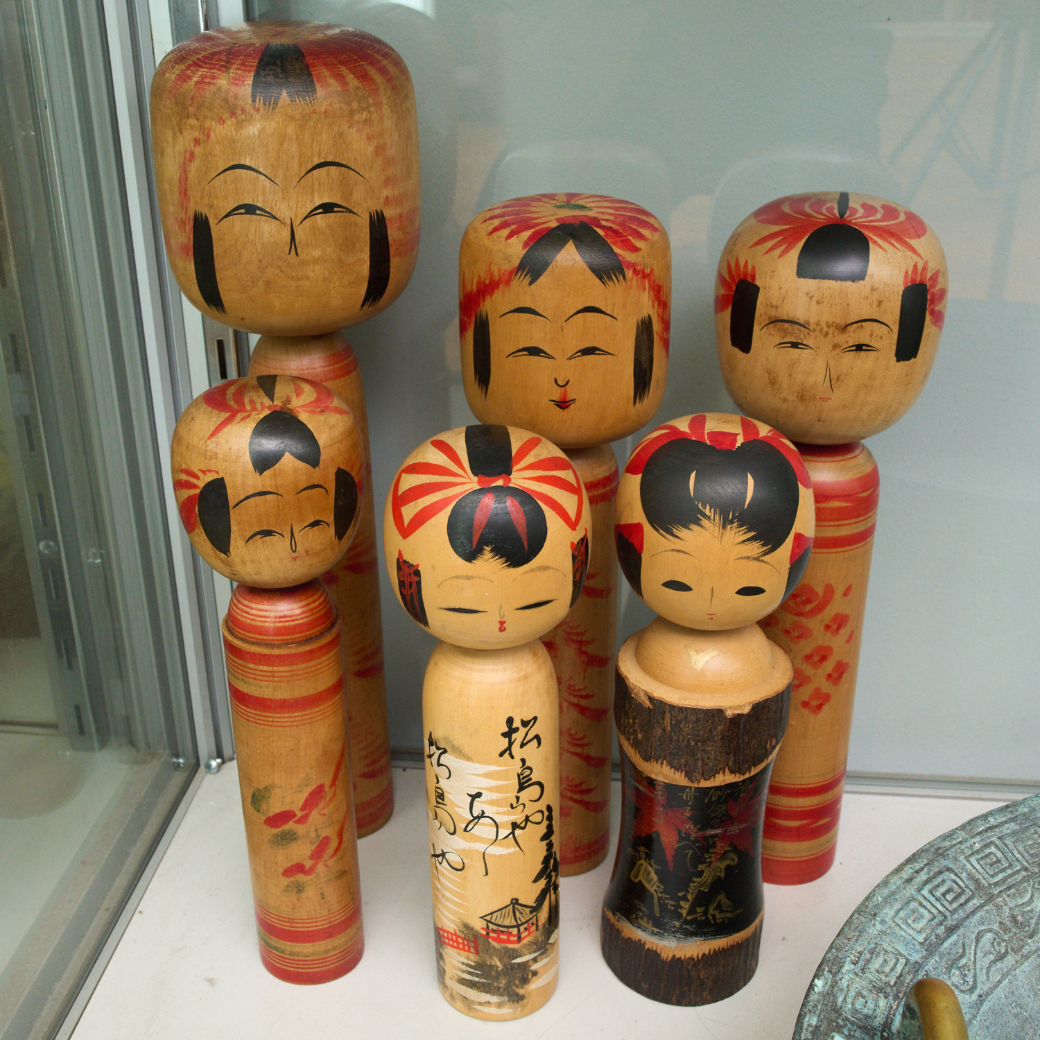 A GROUP OF SIX HAND PAINTED WOODEN KOKESHI DOLLS, LEONARD JOEL LOCAL DELIVERY SIZE: SMALL