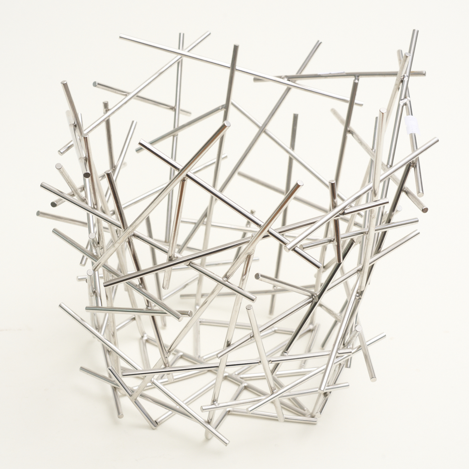 AN ALESSI CHROMED WIRE FORM FRUIT BOWL, H. 28CM, LEONARD JOEL LOCAL DELIVERY SIZE: SMALL