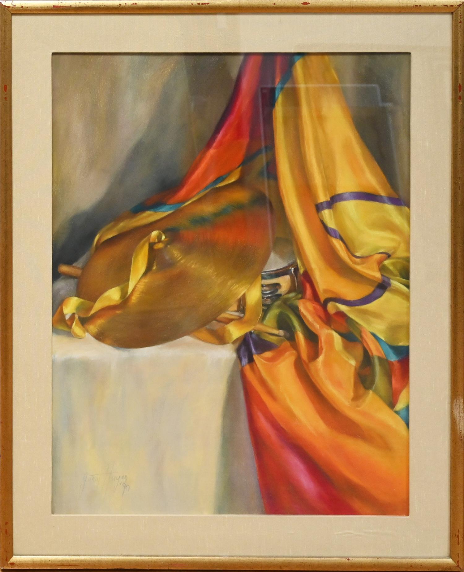 JANET HAYES, CYMBOLS AND SILKS, PASTEL ON PAPER, 71 X 54CM