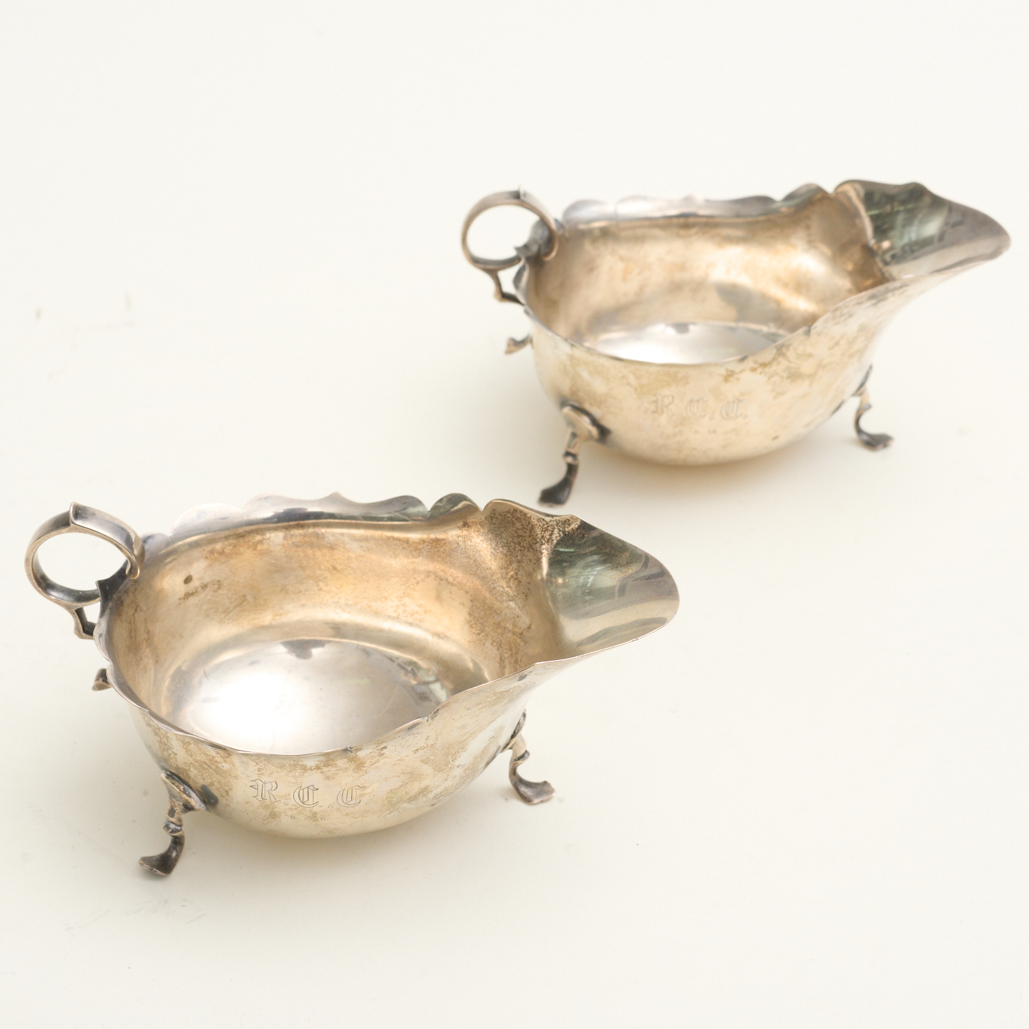 TWO STERLING SILVER SAUCE BOATS, 171G, W.13CM, LEONARD JOEL LOCAL DELIVERY SIZE: SMALL