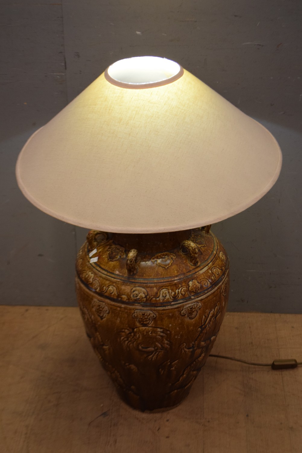 A CHINESE POT COVERTED INTO LAMP ( 88H X 60 DIAMETER CM) (LEONARD JOEL DELIVERY SIZE: LARGE)