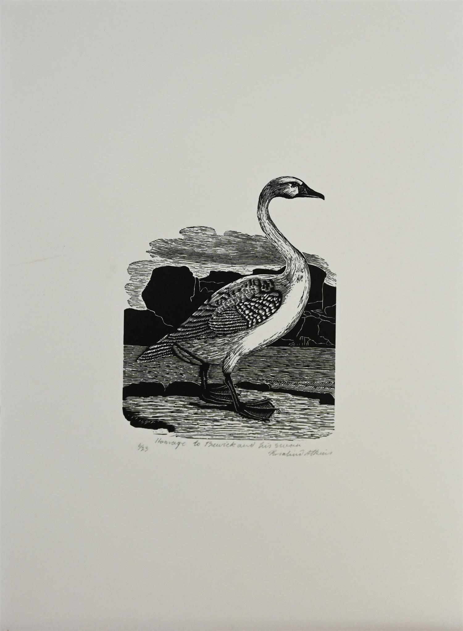 ROSALIND ATKINS, HOMAGE TO BEWICK AND HIS SWAN, LINOCUT 6/23, 39 X 28.5CM (SHEET)