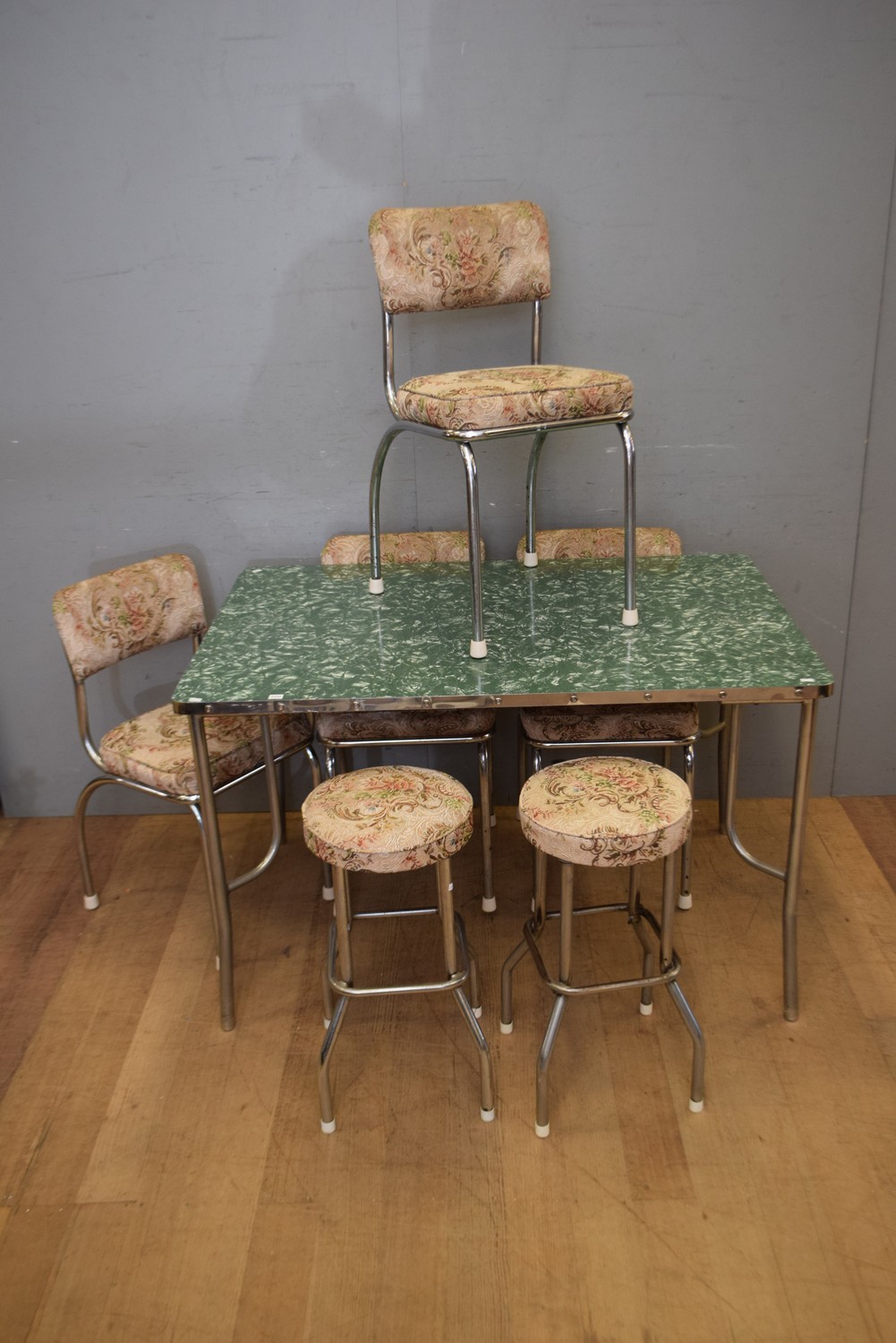 A 1950S LAMINEX KITCHEN SUITE (TABLE 75H x 121W x 81D CM) (PLEASE NOTE THIS HEAVY ITEM MUST BE REMOVED BY CARRIERS AT THE CUSTOMER'S EXPENSE. LEONARD JOEL STAFF CANNOT ASSIST CARRYING THIS ITEM) (X-LARGE ITEM)