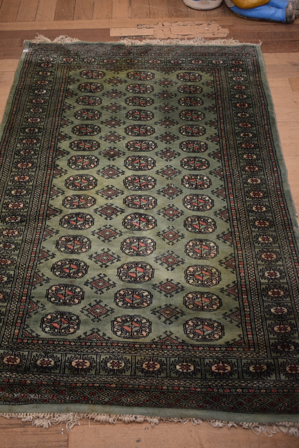 A PRINCESS BOHARA RUG, 100% WOOL IN GREEN TONES (A/F) (200 x 125 CM) (LEONARD JOEL DELIVERY SIZE: LARGE)