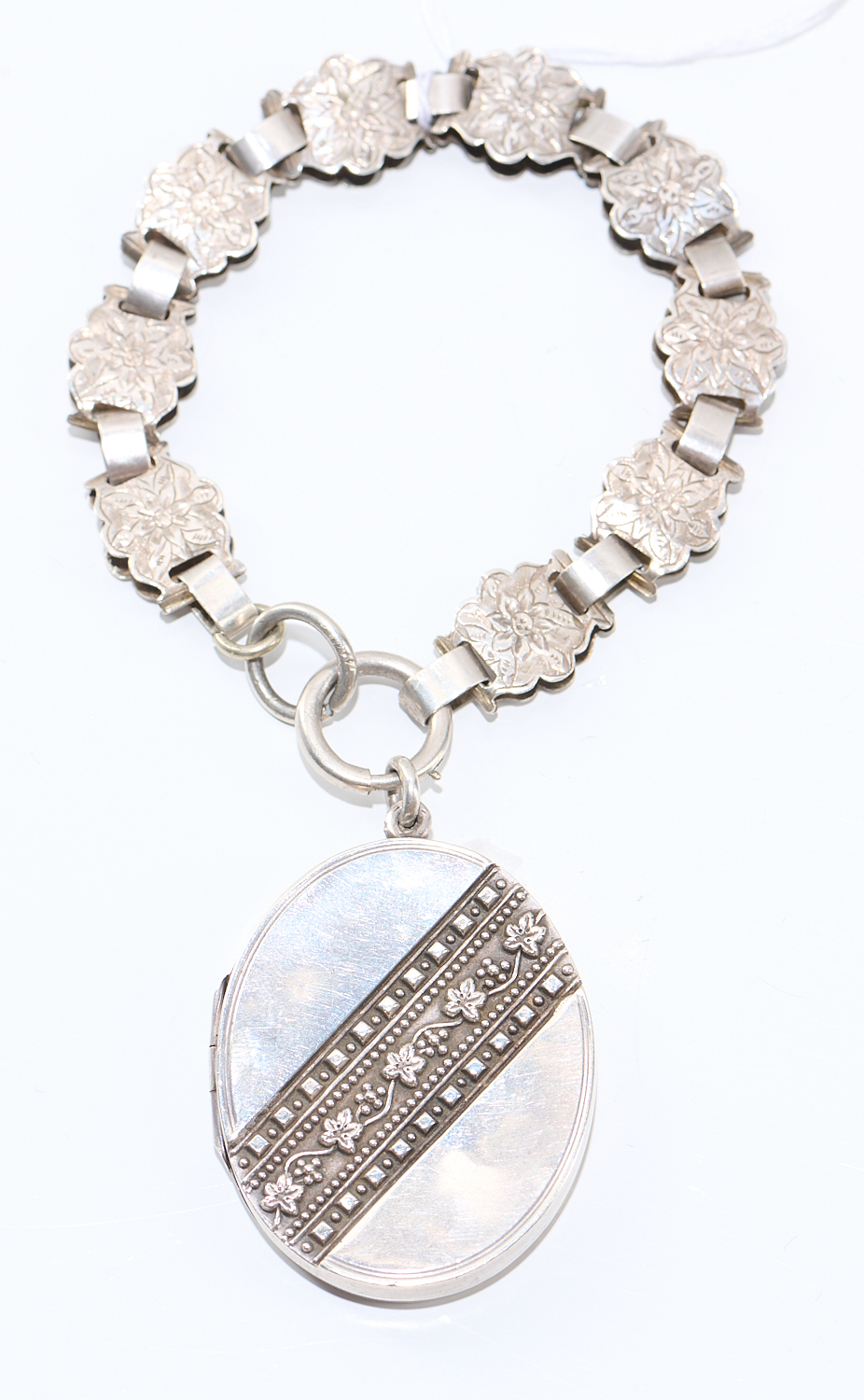 AN ANTIQUE SILVER BRACELET AND LOCKET