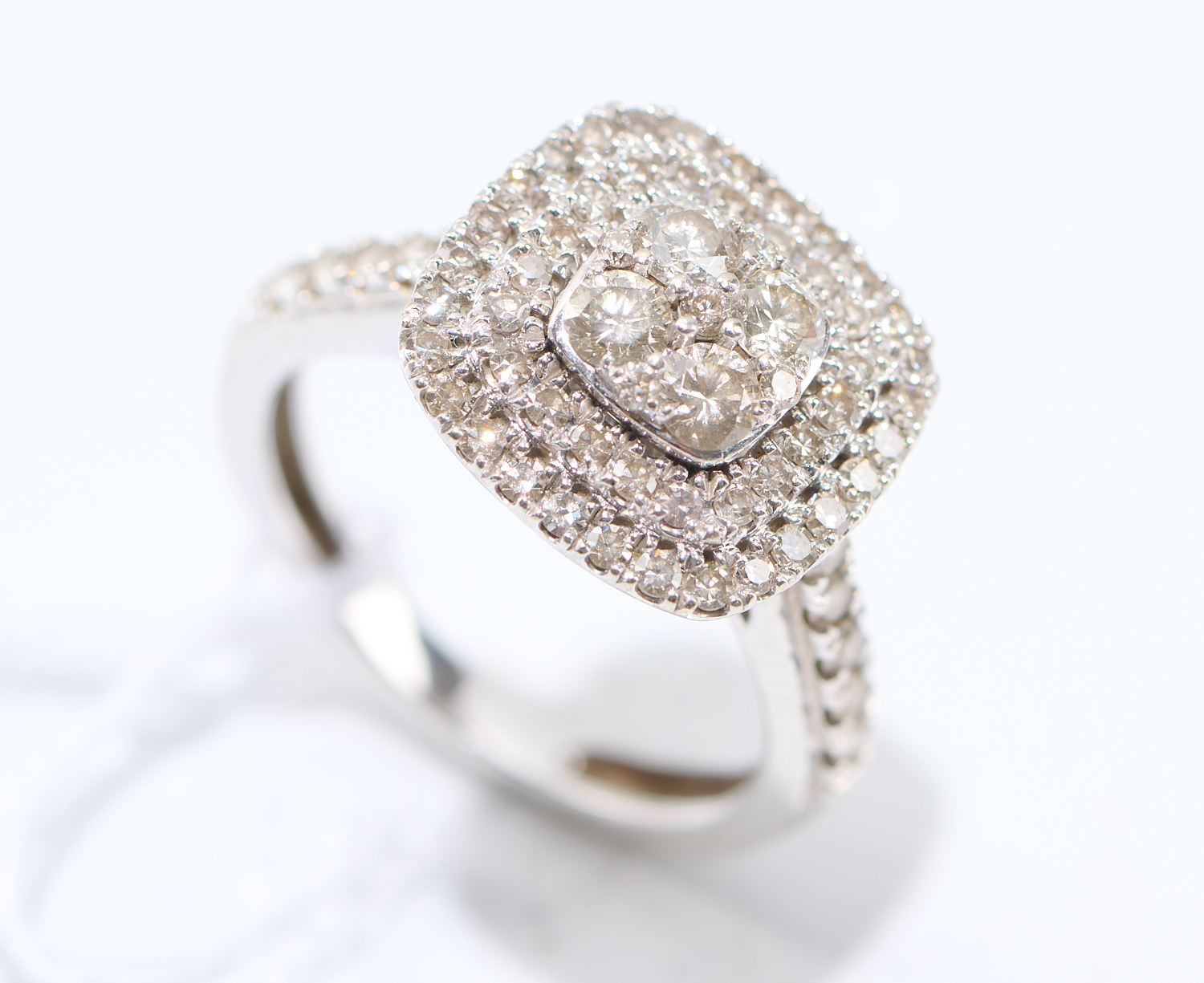 A DIAMOND CLUSTER RING IN 9CT WHITE GOLD, RING SIZE L, 3.94GMS