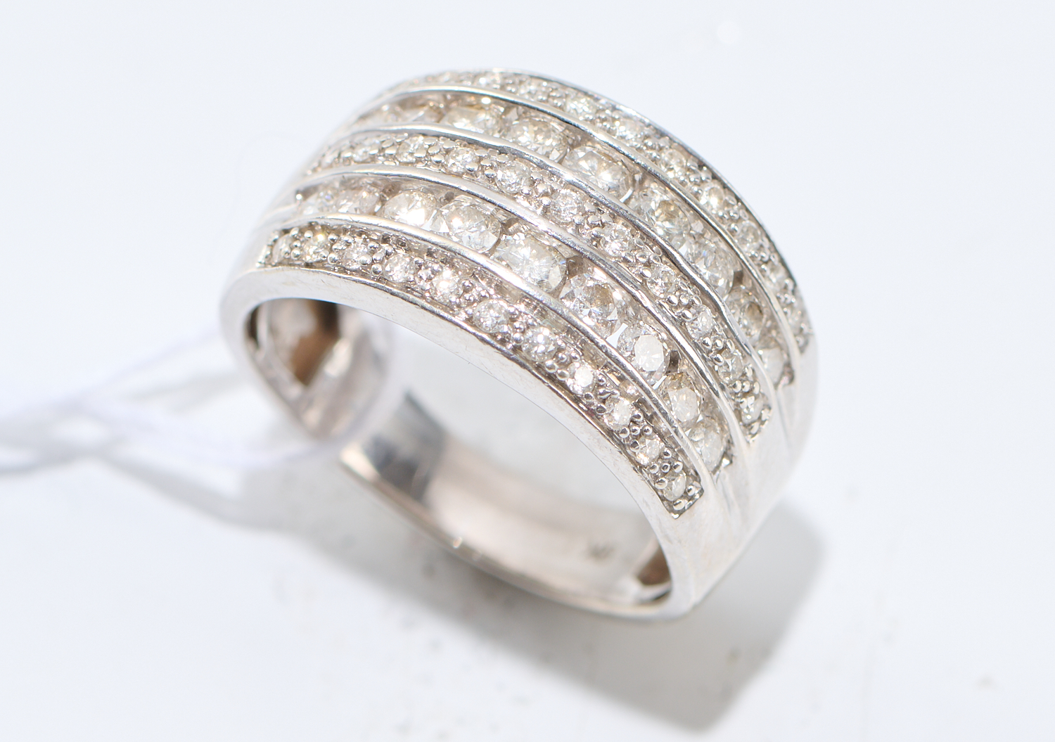 A DIAMOND BAND RING IN 9CT WHITE GOLD, RING SIZE M, 4.52GMS