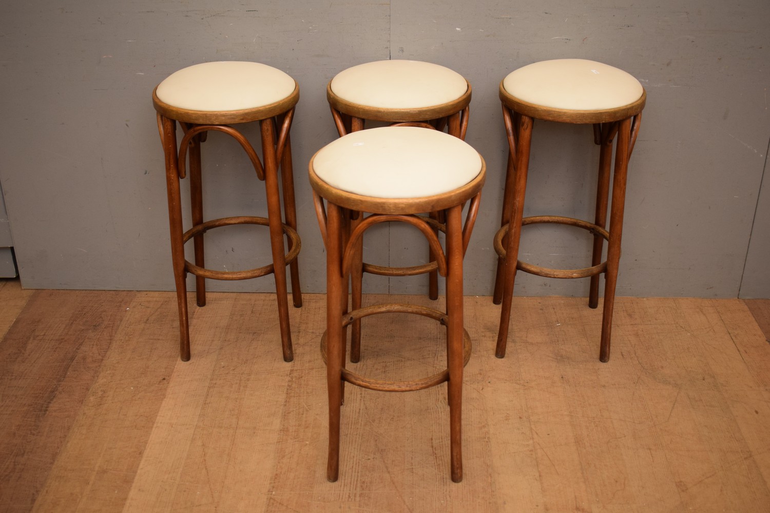 A SET OF FOUR BENTWOOD BARSTOOLS (78H x 39D CM) (LEONARD JOEL DELIVERY SIZE: LARGE)