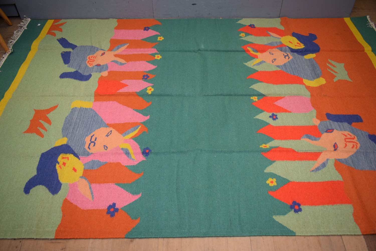 A 100% WOOLEN INDIAN DHURRIE REVERSABLE GARDEN OF PARADISE DESIGN (310 x 198 CM) (LEONARD JOEL DELIVERY SIZE: LARGE)
