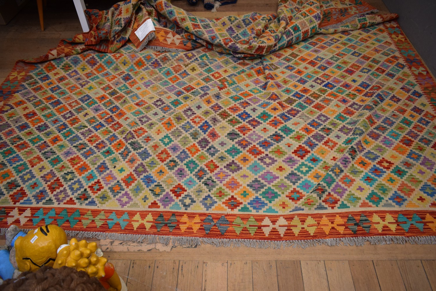 A KAZAK WOOLEN RUG HAND SPUN WITH NATURAL VEGETABLE DYES WITH DIAMOND CUT MOTIF (403 x 310 CM) (LEONARD JOEL DELIVERY SIZE: LARGE)