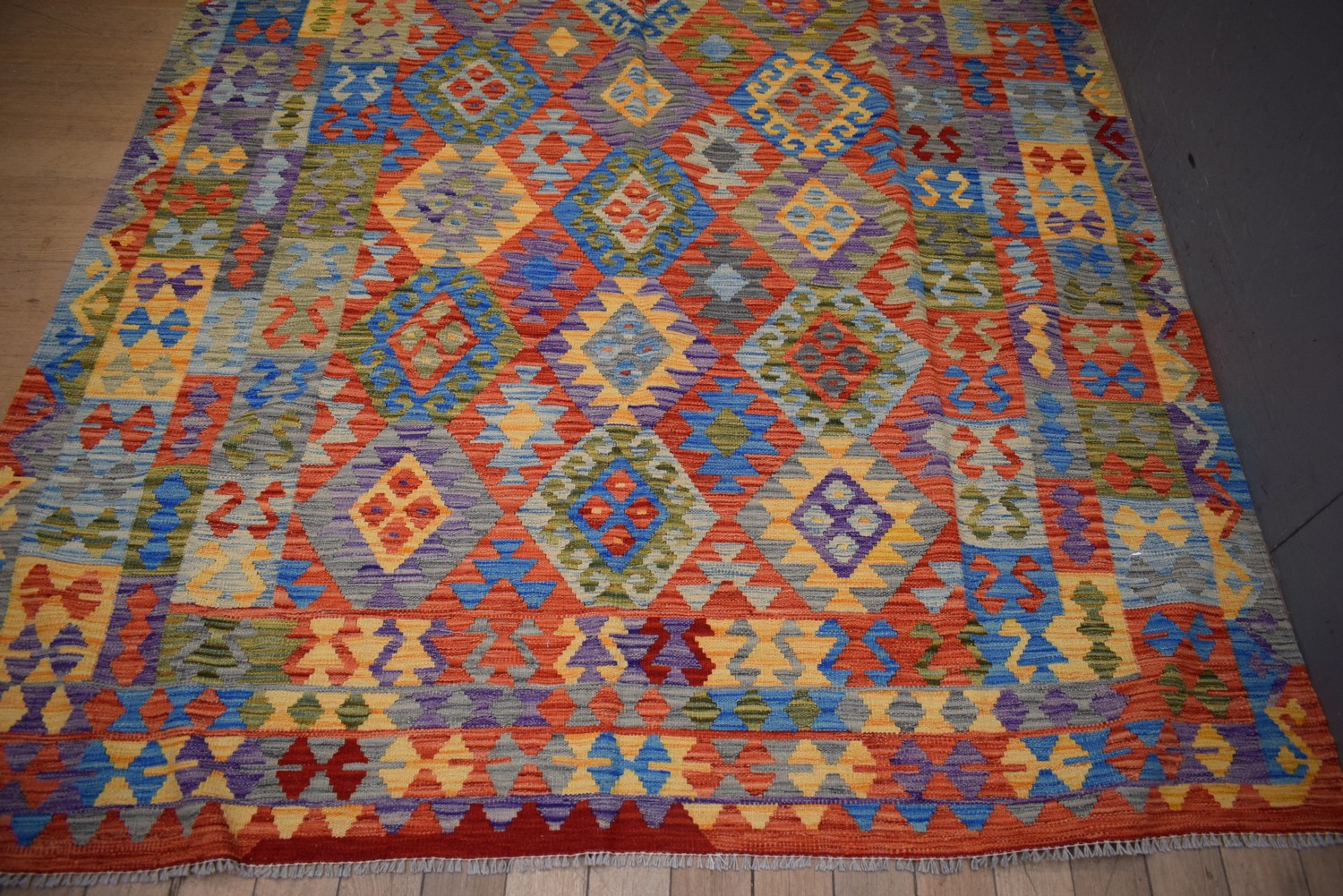 A 100% WOOLEN KAZAK HAND SPUN WOOL RUG IN CAUCASIAN DESIGN NATURAL VEGETABLE DYES (305 x 205 CM) (LEONARD JOEL DELIVERY SIZE: LARGE)