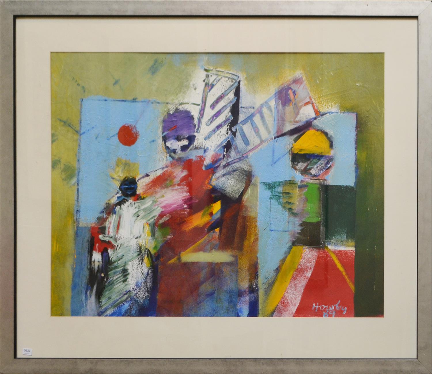 JOHN HOWLEY, UNTITLED 1989 (ABSTRACT), OIL ON BOARD, 73 X 93CM