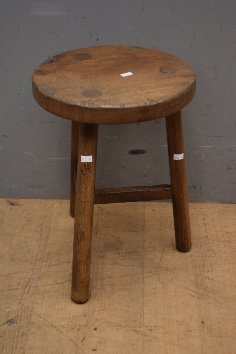 AN OAK FRENCH FARMHOUSE STYLE MILKING STOOL ( 41H X 31 DIAMETER CM) (LEONARD JOEL DELIVERY SIZE: MEDIUM)