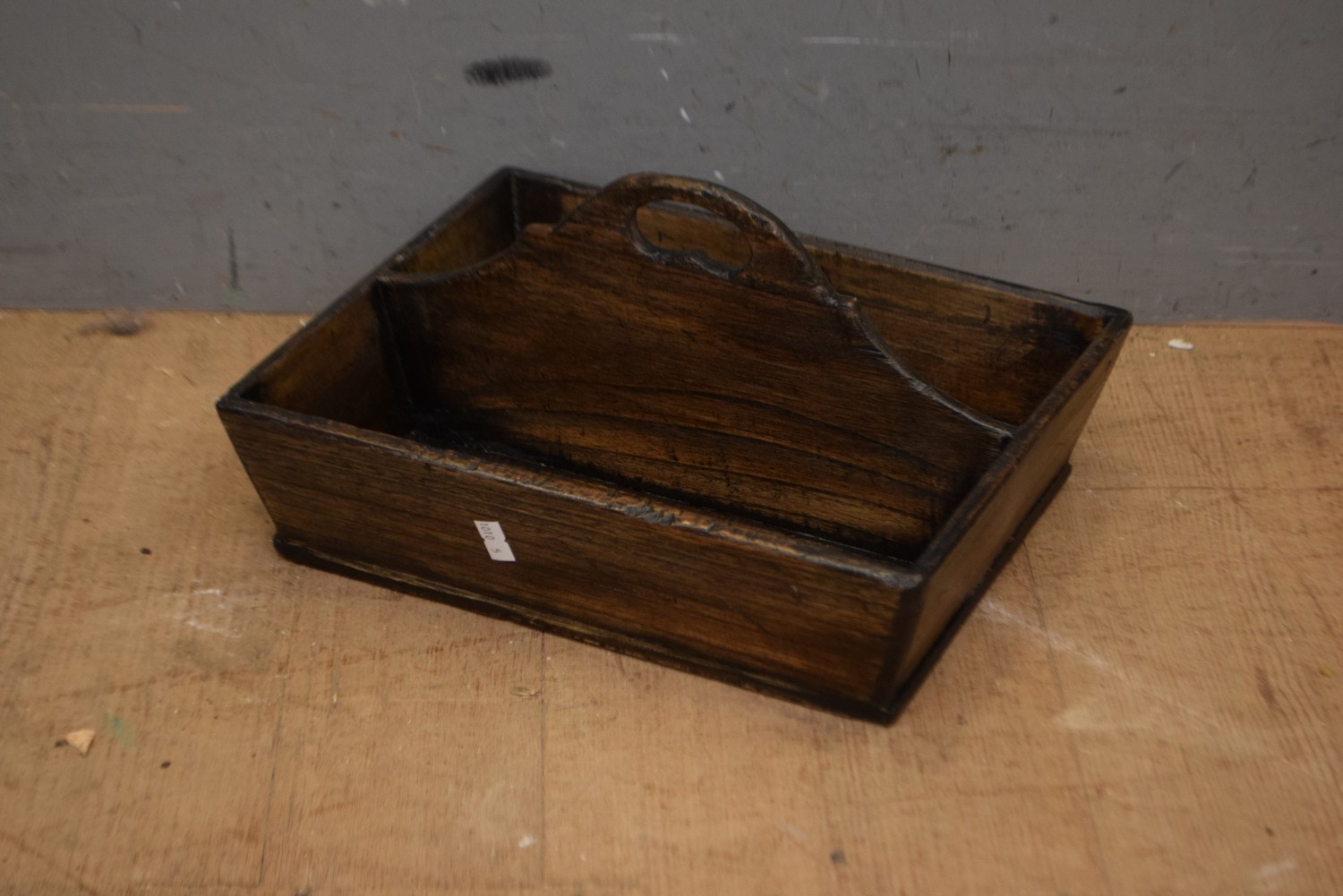 AN OAK CUTLERY TRAY ( 17H X 32W X 27D CM) (LEONARD JOEL DELIVERY SIZE: MEDIUM)