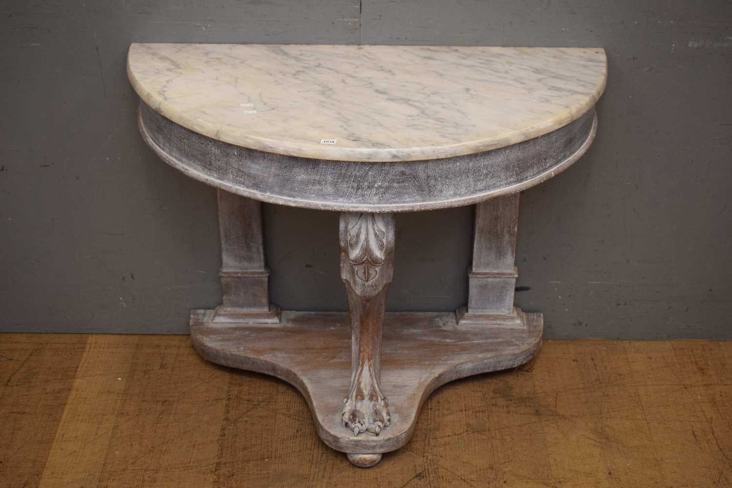 A VICTORIAN LIMED MARBLE TOP CONSOLE TABLE (70H x 91W x 47D CM) (LEONARD JOEL DELIVERY SIZE: LARGE)