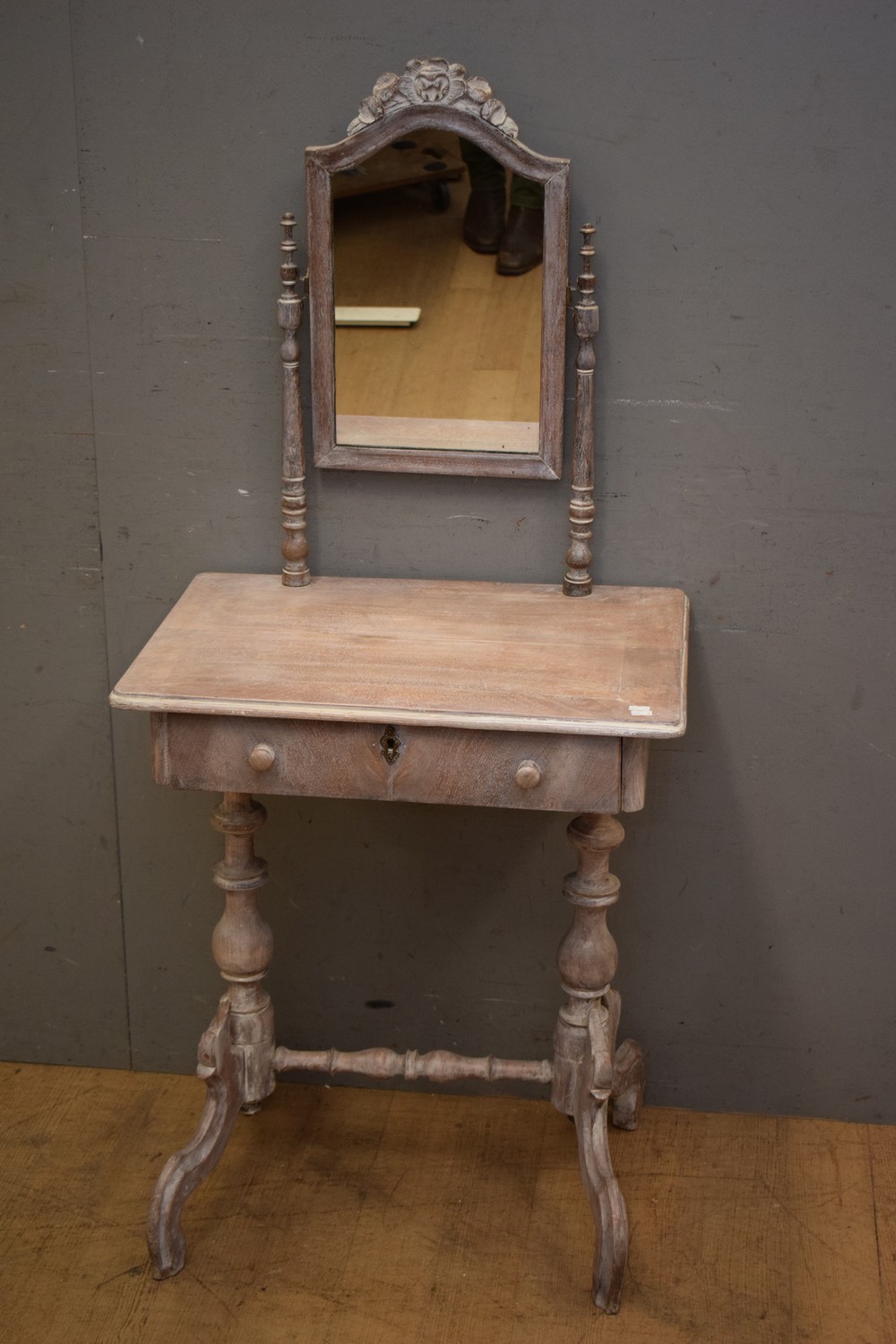 A LIMED VANITY TABLE WITH MIRROR (153H x 63W x 47D CM) (LEONARD JOEL DELIVERY SIZE: LARGE)