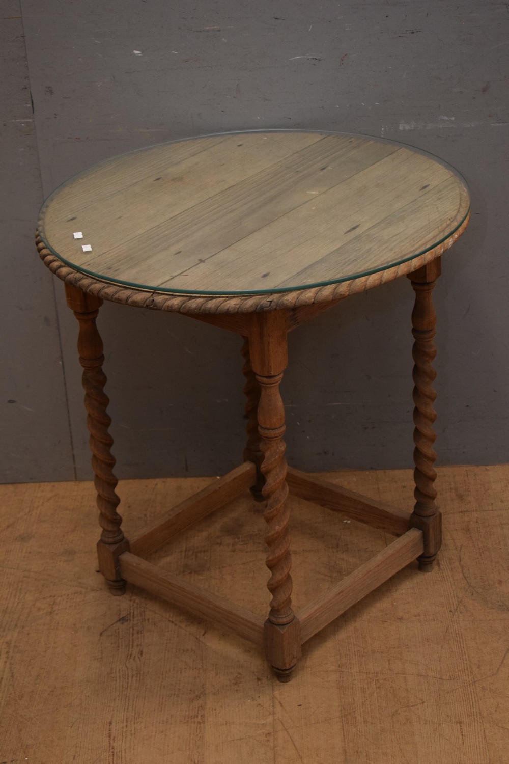 AN EDWARDIAN RUSTIC OCCASIONAL TABLE WITH GLASS TOP (A/F) (73H x 67D CM) (LEONARD JOEL DELIVERY SIZE: LARGE)
