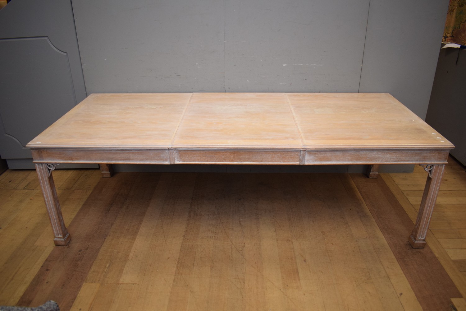 A LIMED CHINESE CHIPPENDALE STYLE EXTENSION TABLE WITH ONE LEAF, 1976 FROM GEORGES MELBOURNE (A/F) (77H x 250W x 105D CM) (PLEASE NOTE THIS HEAVY ITEM MUST BE REMOVED BY CARRIERS AT THE CUSTOMER'S EXPENSE. LEONARD JOEL STAFF CANNOT ASSIST CARRYING THIS ITEM) (X-LARGE ITEM)