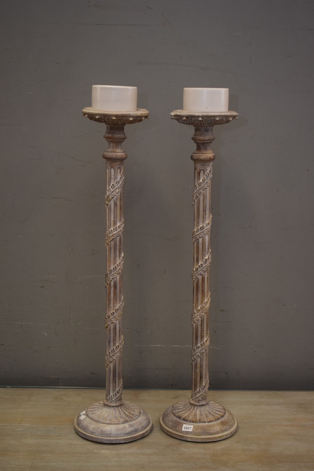 A PAIR OF LIMED CANDLE STICKS (84H CM) (LEONARD JOEL DELIVERY SIZE: LARGE)