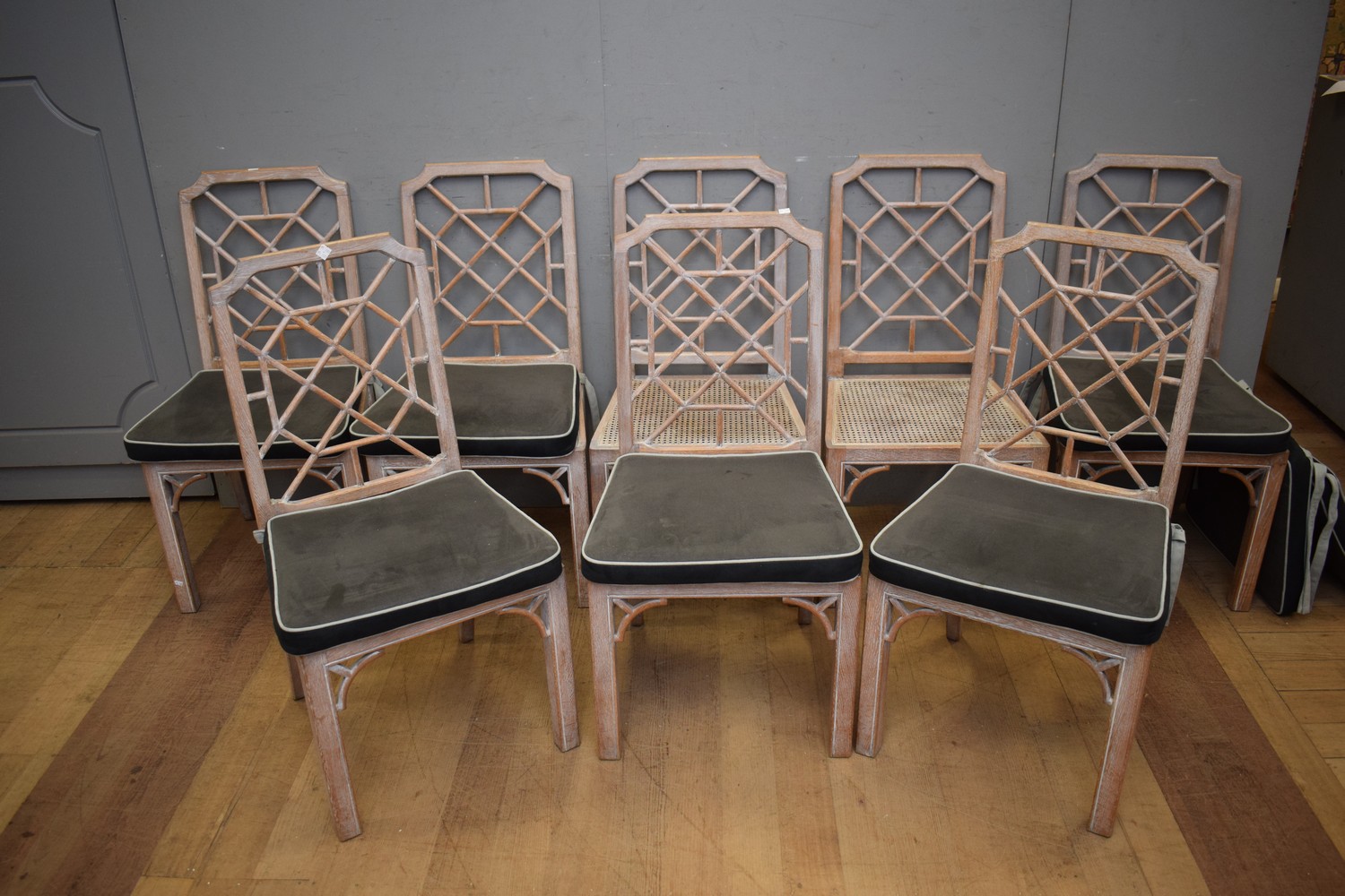 A SET OF EIGHT LIMED CHAIRS FROM GEORGES OF MELBOURNE (A/F) (99H x 52W x 47D CM) (LEONARD JOEL DELIVERY SIZE: LARGE)