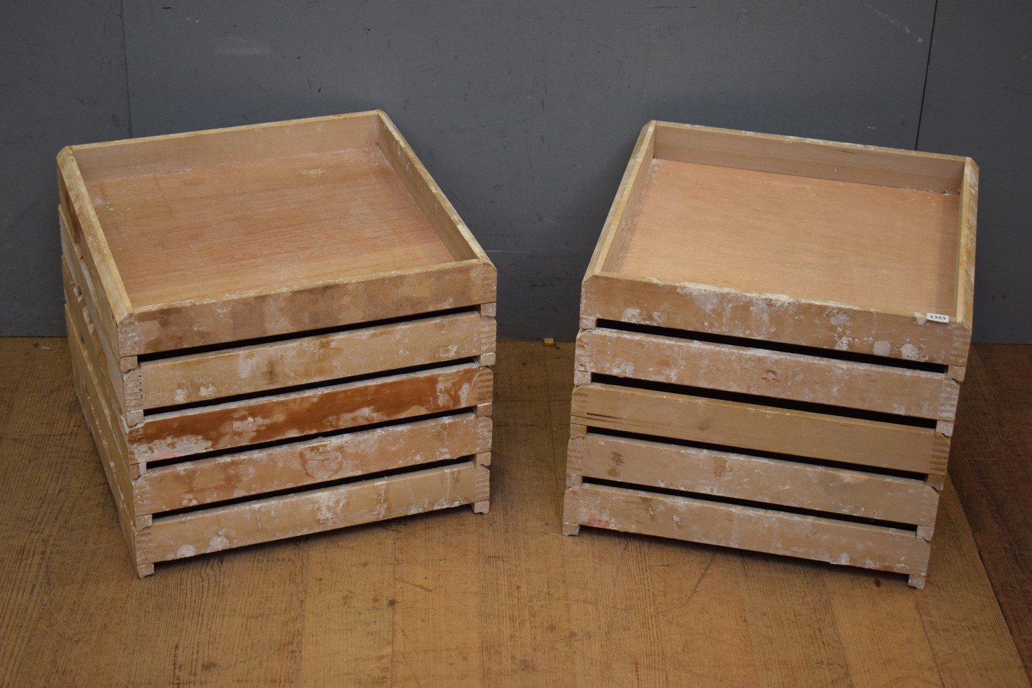 A SET OF TEN WOODEN STARCH TRAYS 8cm x 46cm x 46cm (LEONARD JOEL DELIVERY SIZE: LARGE)
