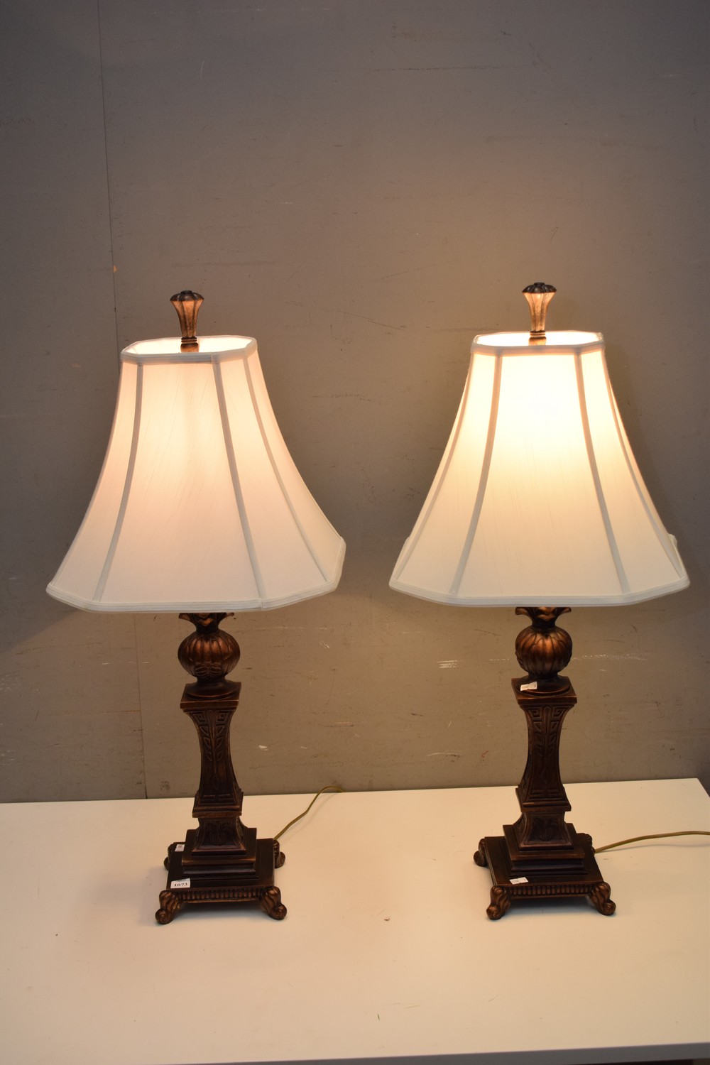 A PAIR OF CLASSICAL STYLE TABLE LAMPS (A/F) (83H CM) (LEONARD JOEL DELIVERY SIZE: MEDIUM)
