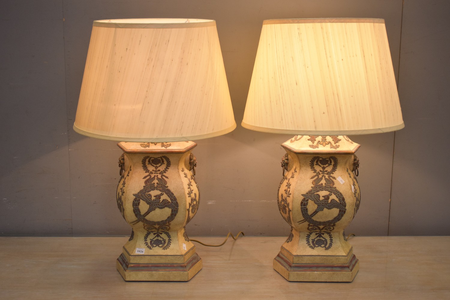 PAIR OF CLASSICAL STYLE TABLE LAMPS WITH HAND PAINTED DETAILING (76H CM) (LEONARD JOEL DELIVERY SIZE: LARGE)